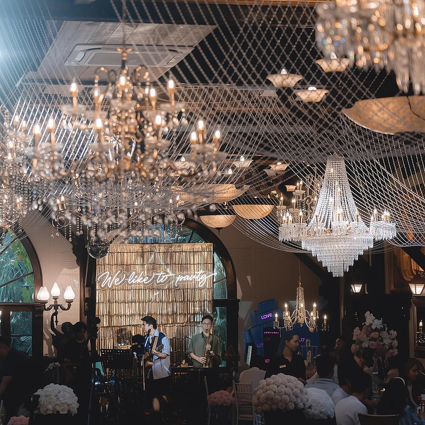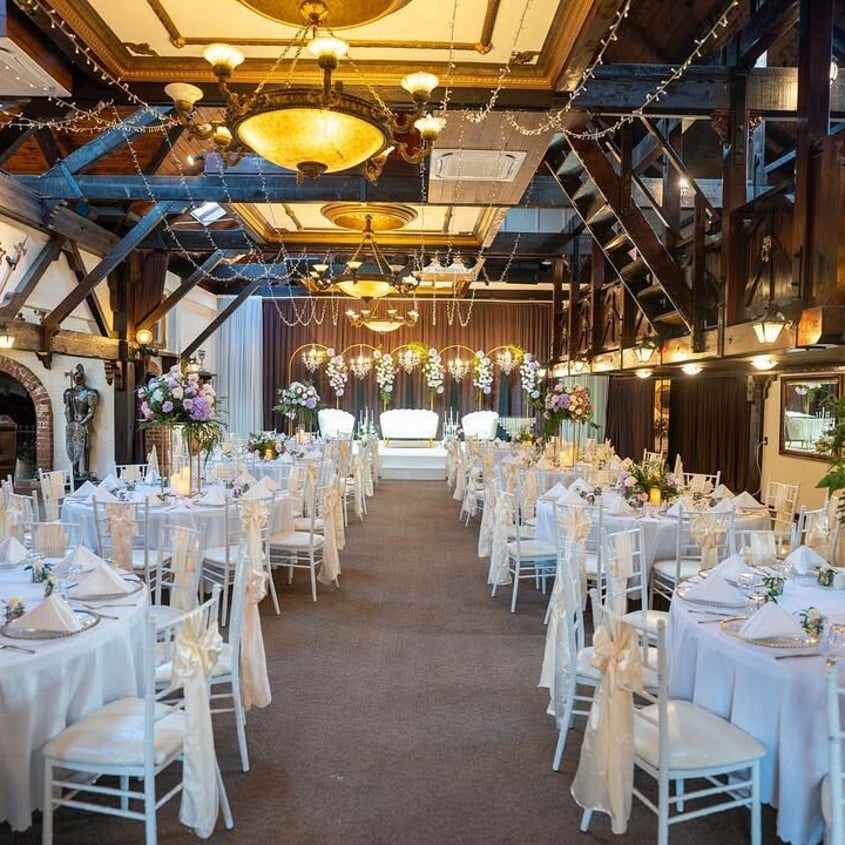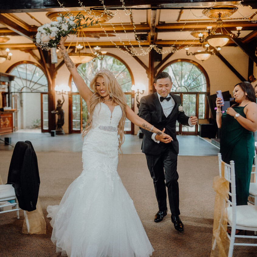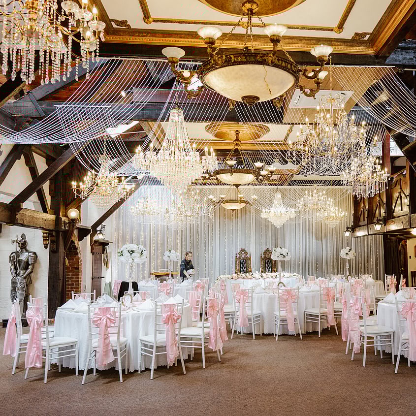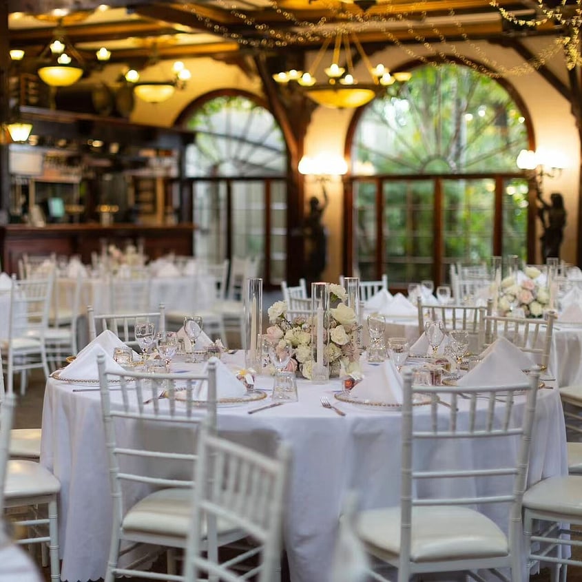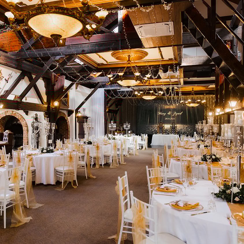 Browse how couples have configured the room for their celebration, from guest seating layouts and head table positioning to floral styling, place settings, and ambient lighting across the evening.