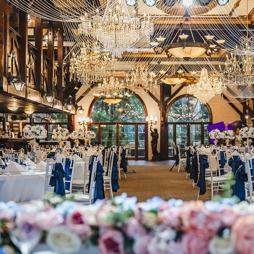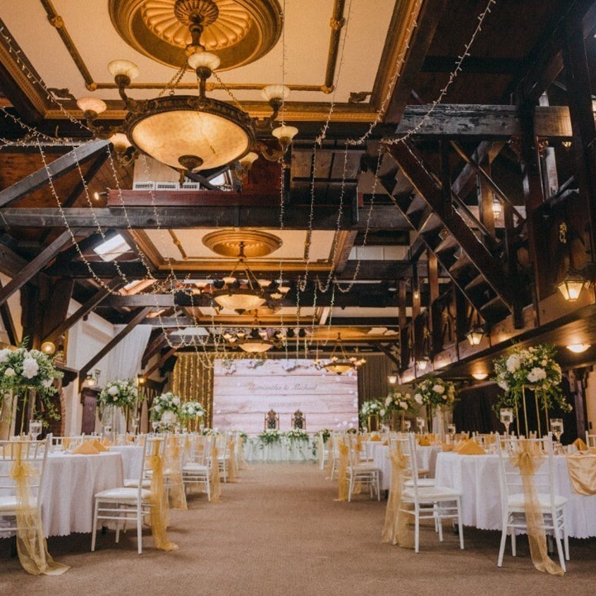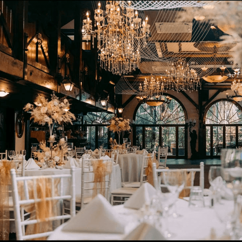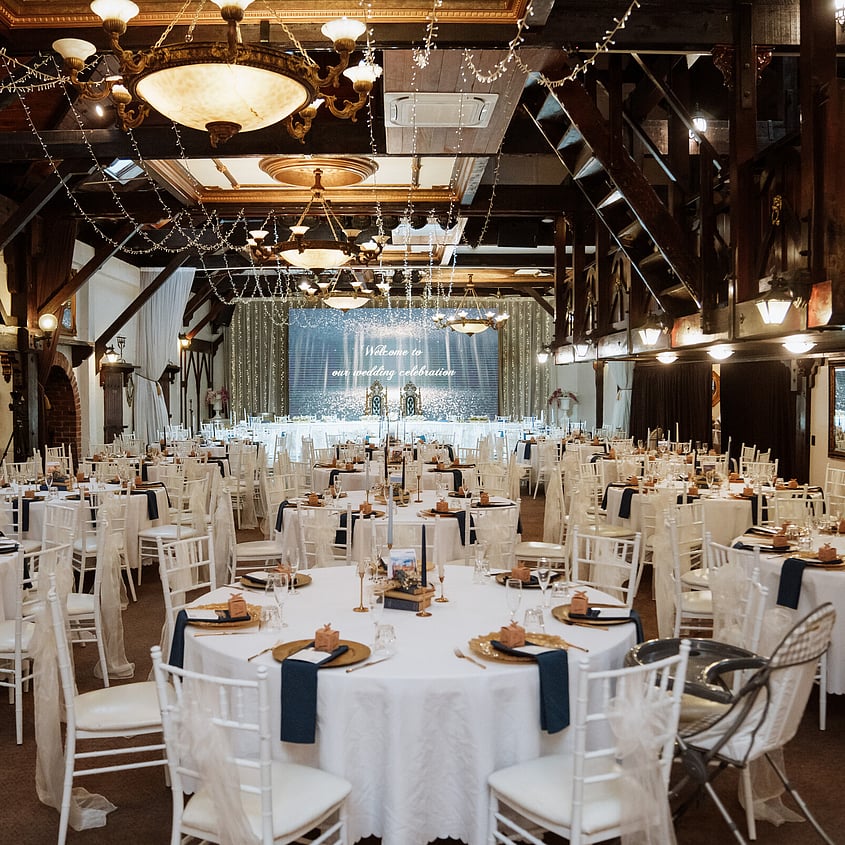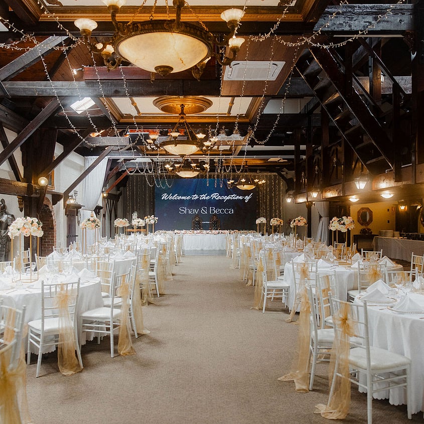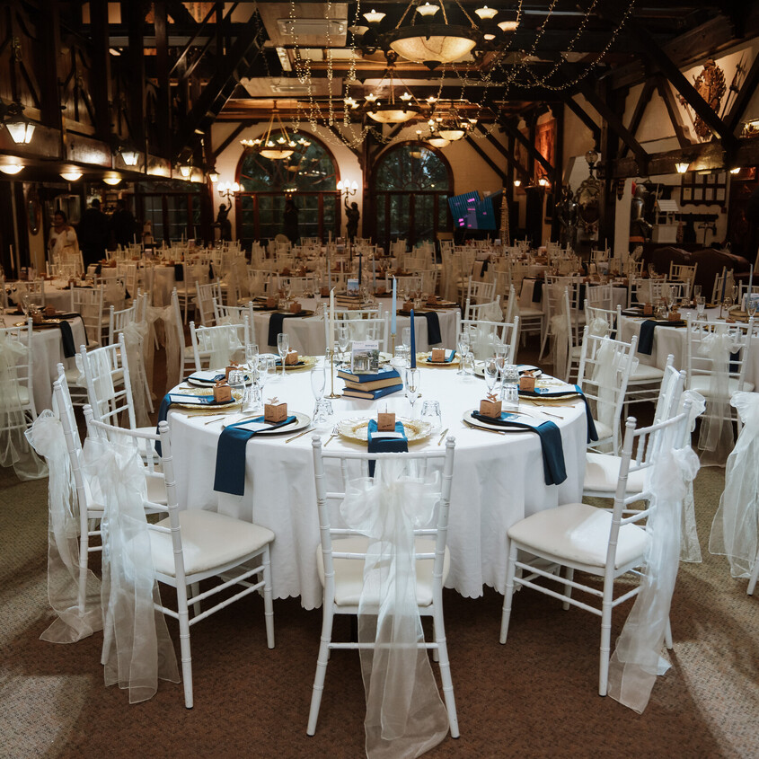 Every reception brings its own look and feel to the Banquet Hall at Settlers Country Manor. This wedding reception gallery features real celebrations previously held on site, with images capturing different table arrangements, dance floor placements, lighting setups, and décor styling used throughout the space.